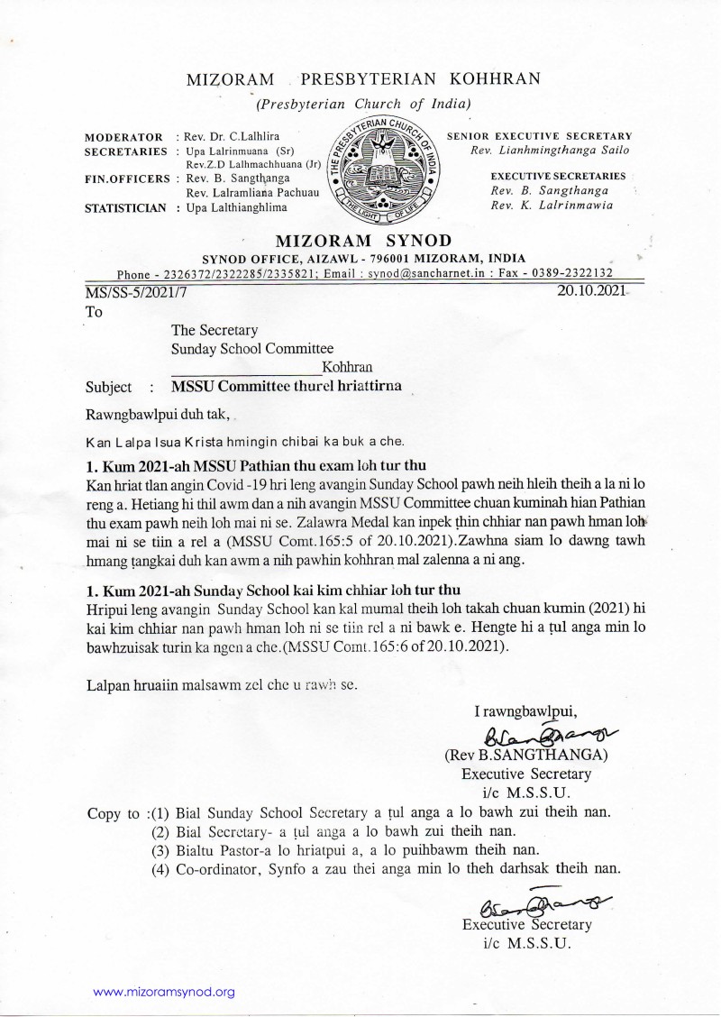 2021 MSSU Exam loh thu leh kaikim chhiar loh chungchang
